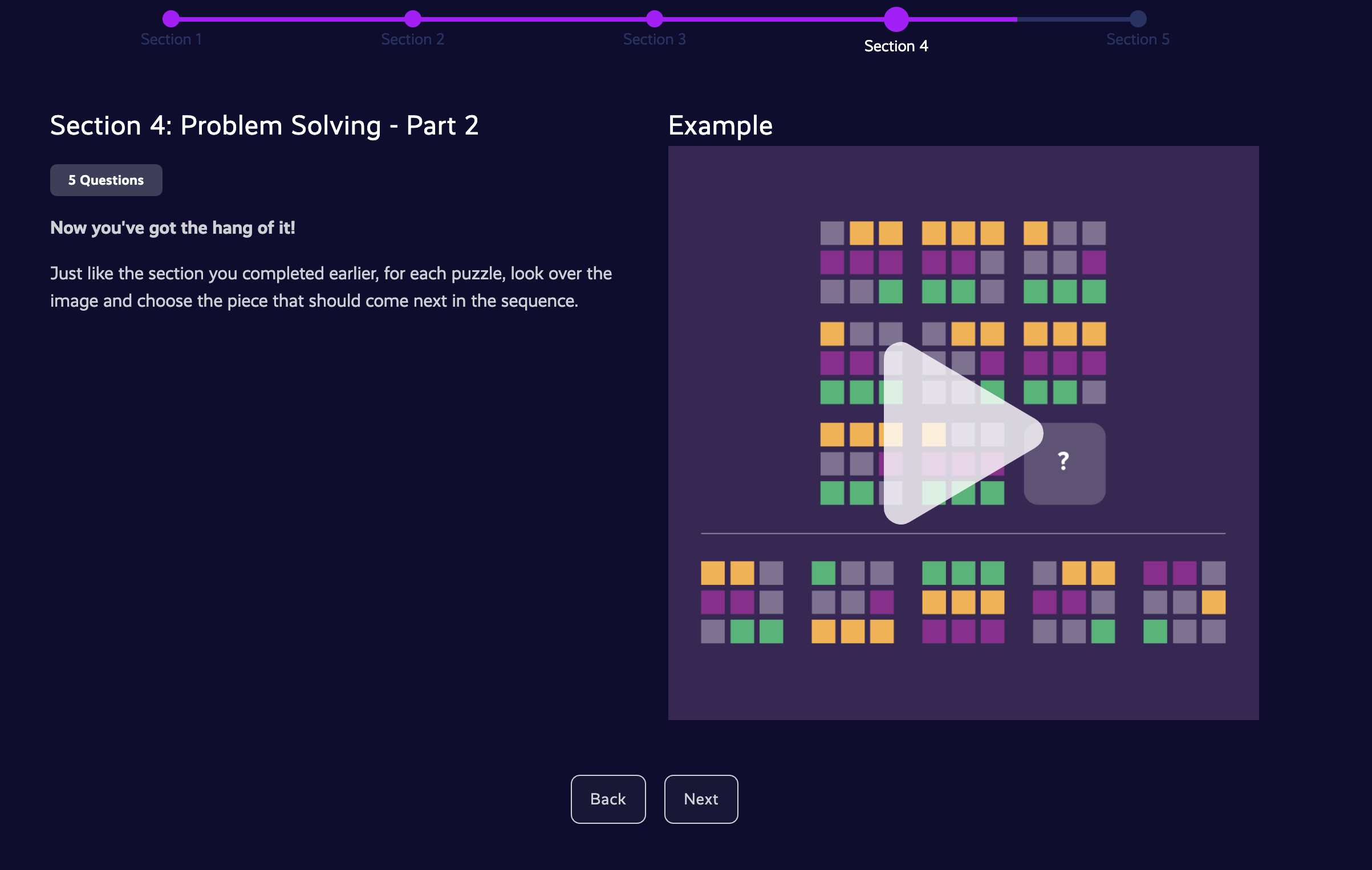 - each section consists of 5 to 15 questions
