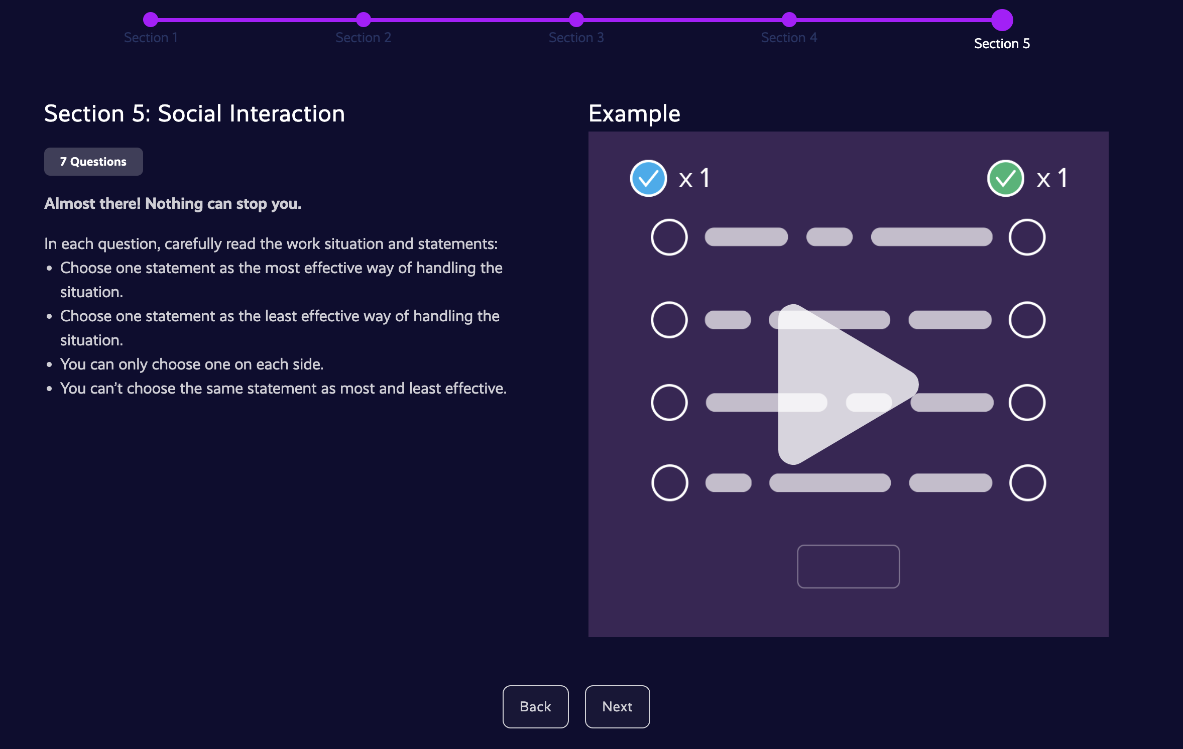 - questions range from logical reasoning to situational judgement and personality behaviour