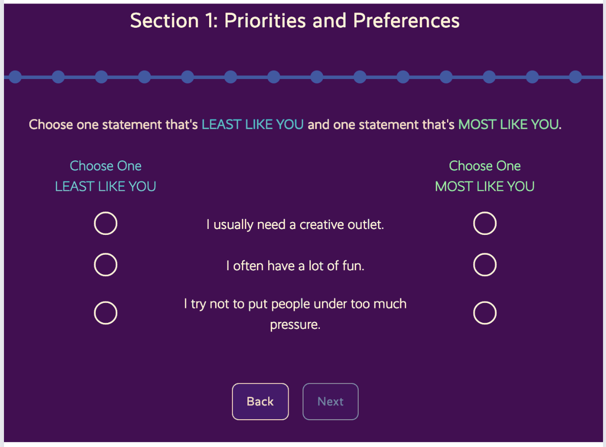 - Statement that is LEAST LIKE YOU is: "I usually need a creative outlet"