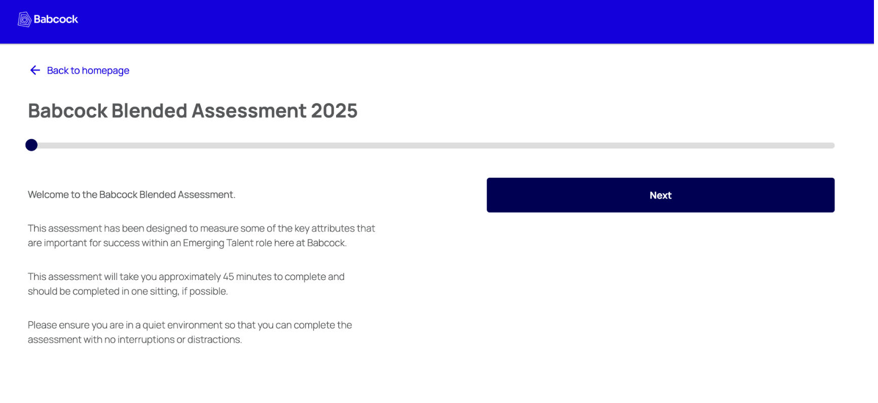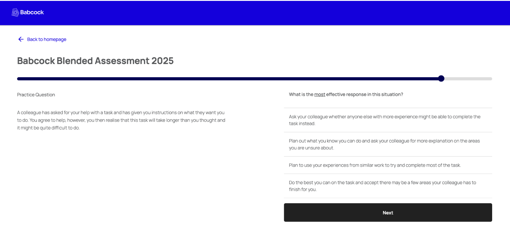 - There are 4 sections in the Babcock Blended Assessment for the 2025/26 intake year