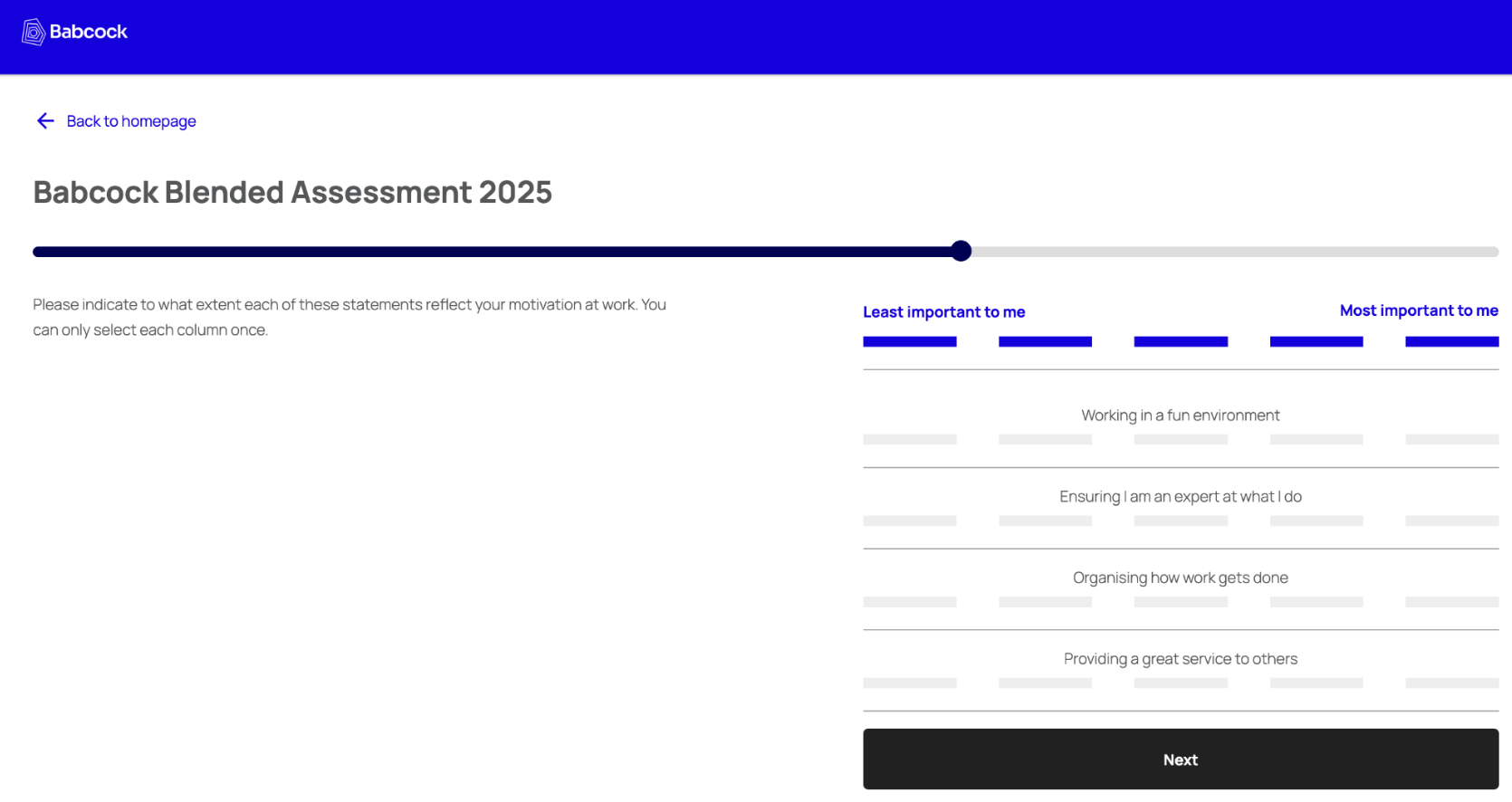 - Motivational Questionnaire is a value ranking question in the Babcock Blended Assessment. You can only select each column once, which means you’re essentially being asked to rank the 4 motivations.