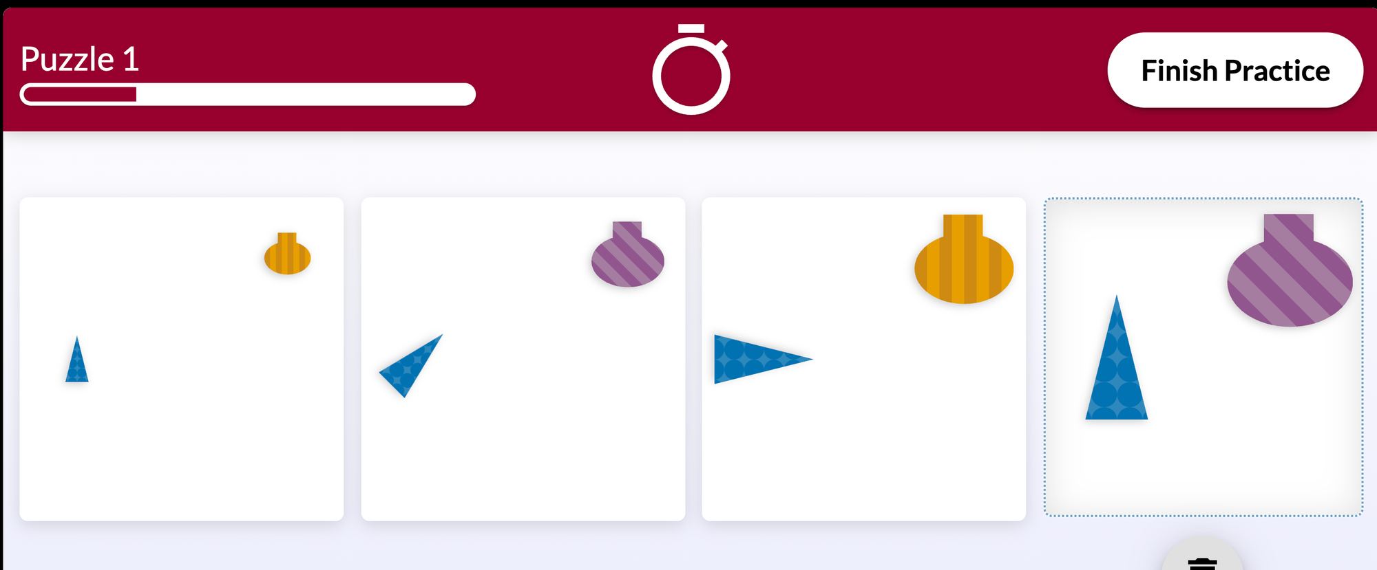 - Card 4: Should be 4/4 size (full), purple