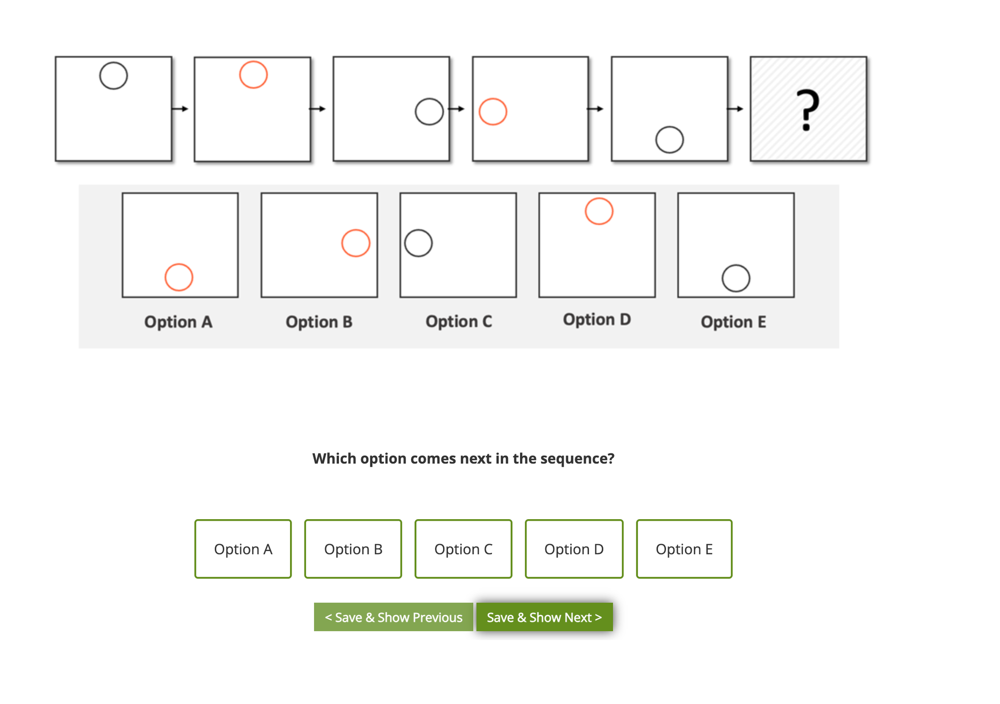 To determine which option comes next in the sequence, let's analyze the given pattern step by step: