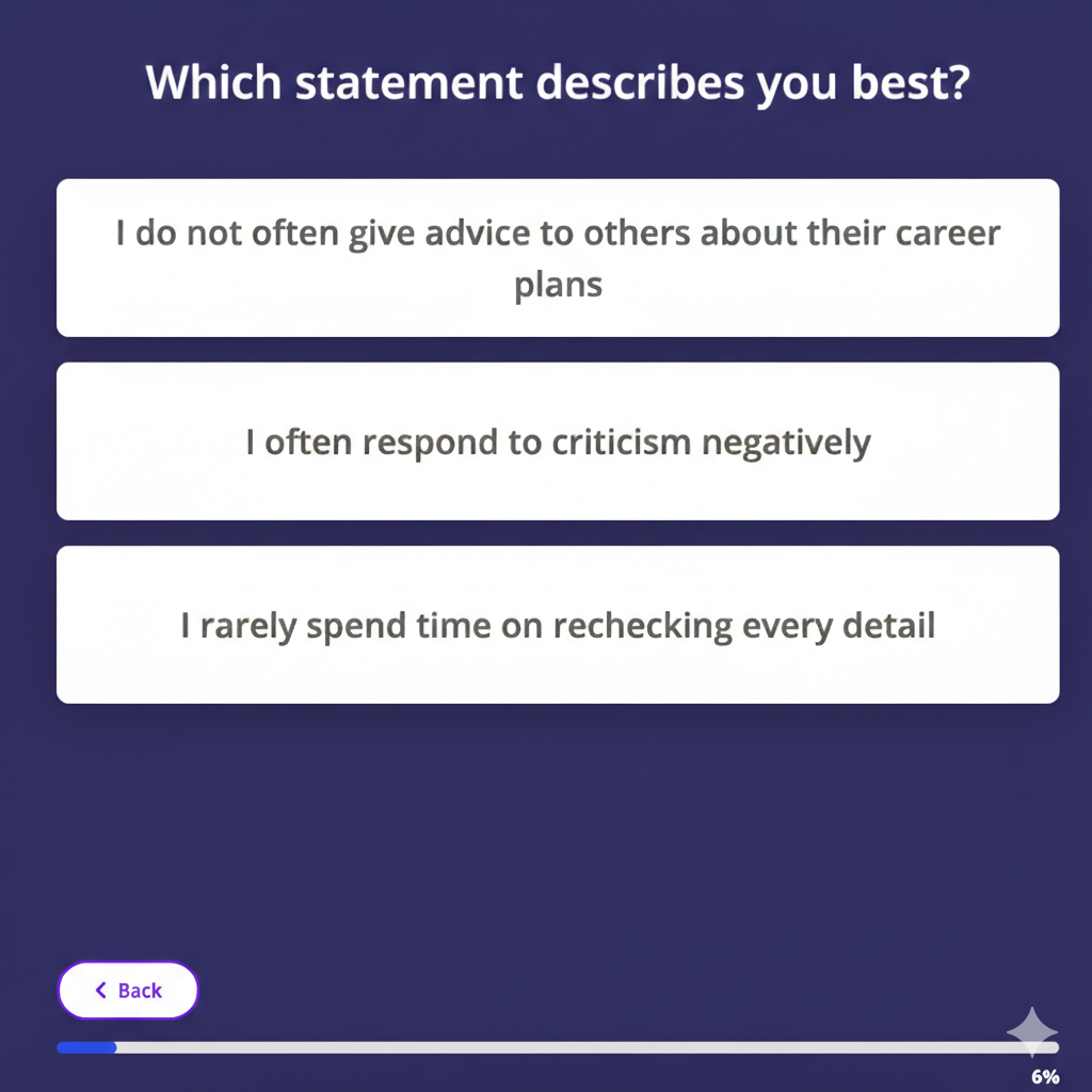 - Choosing the statement that "describes you best" in a situational judgment or personality assessment isn't about finding a "right" answer, but rather about identifying your inherent professional traits.