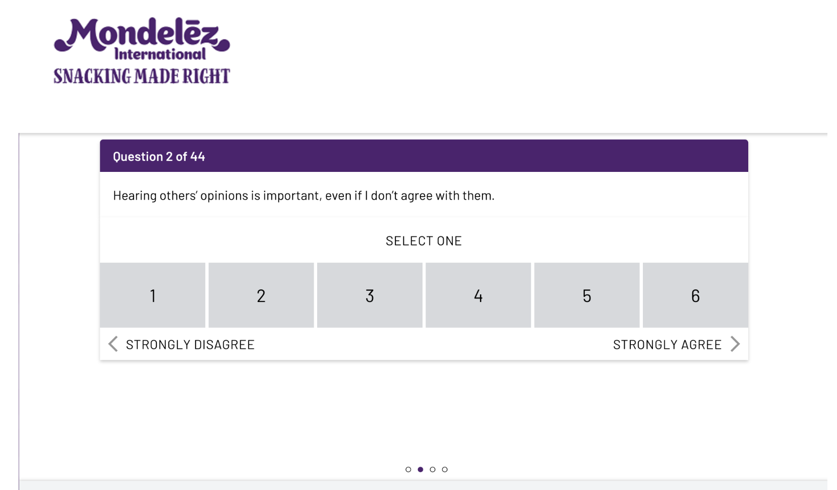 For a graduate role at Mondelēz, you should select 6 (Strongly Agree).