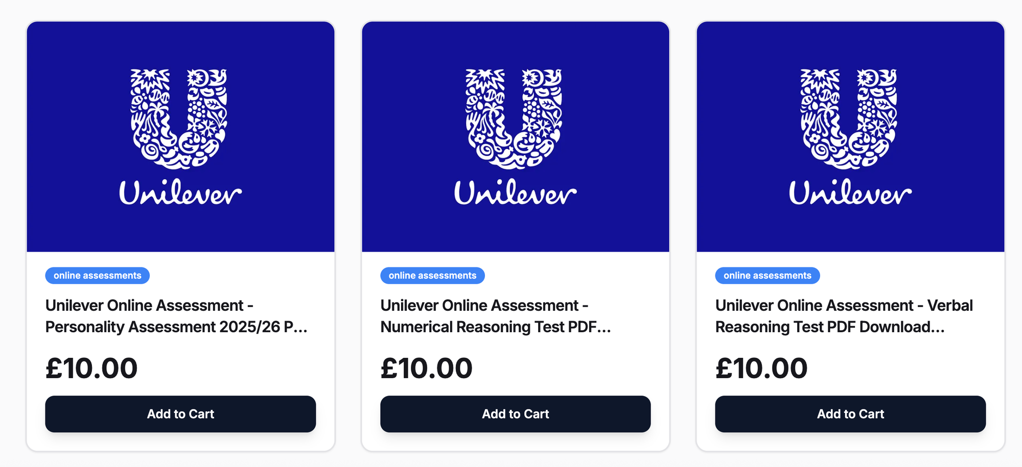 - Ensure they're up-to-date and relevant to Unilever's current assessment format